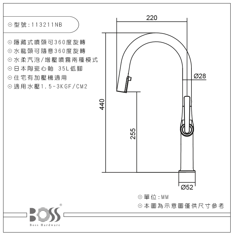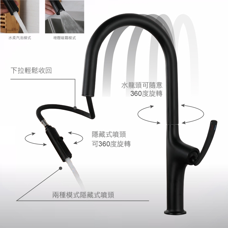 113211MB 伸縮廚房龍頭/尊爵黑