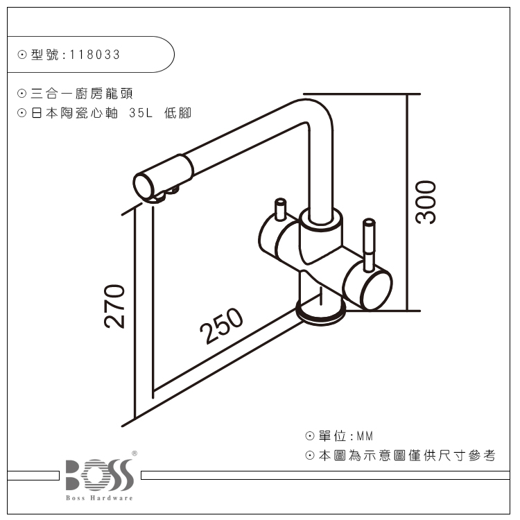118033CP 不鏽鋼三合一RO廚房龍頭/亮鉻色