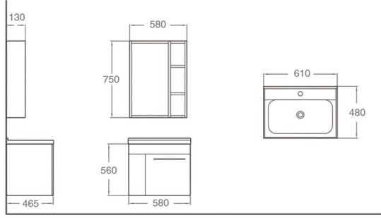 • 浴櫃:W58*D46.5*H56公分。