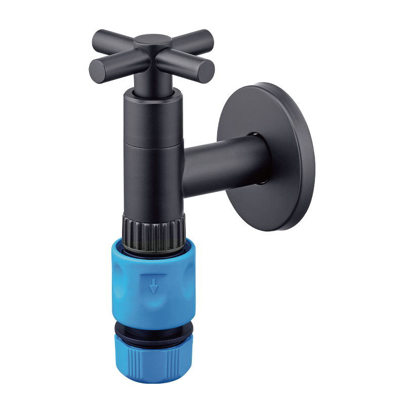 D-718 不銹鋼十字長栓-附快速接頭-戶外龍頭-消光黑