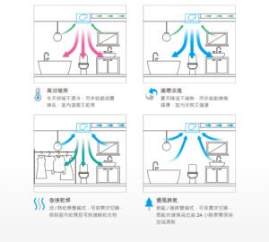 通風換氣:1.(節能)人不在室內時,可開24小時換氣,保乾爽又省電