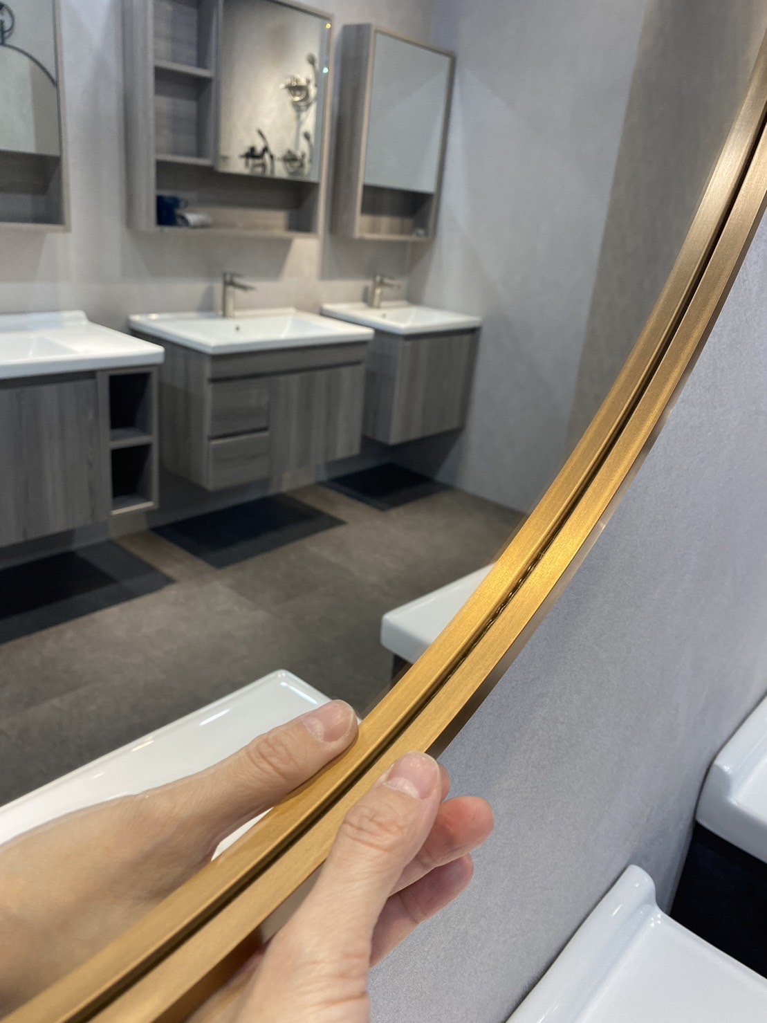 KQ-S5586B 不鏽鋼框掛環圓鏡-金框/寬60公分