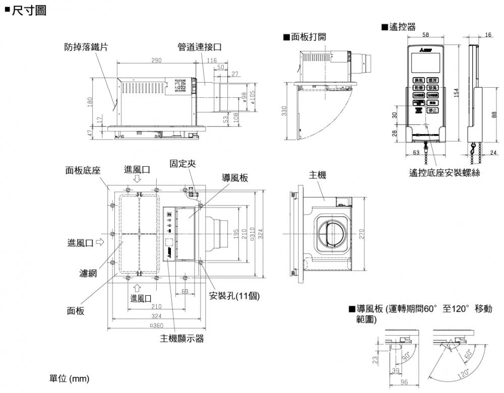 三菱 浴室暖風機 V-151BZ-TWN / V-251BZ-TWN(遙控型)